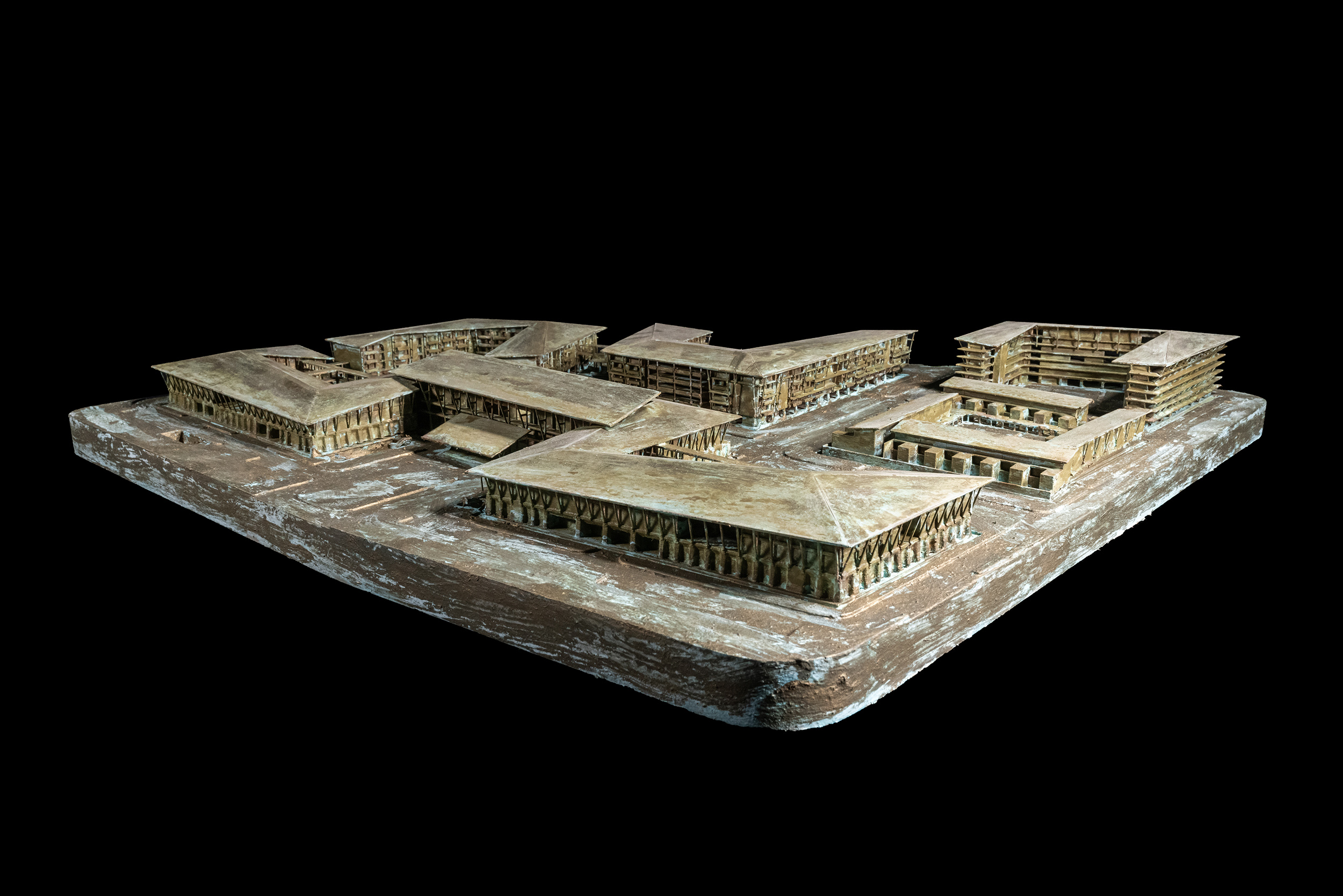 外观形象是最先触发观者感官的大众化传播符号。为使其穿越时间长河,在更长远维度内耐看而历久弥新,除使用材料的考量外,精微层面的部件设计也会成为关键因素,比如悬挂于基座的灯具原设计为木构搭接样态,与大气的传统木结构相称;其次,医疗楼公共主入口的大屋檐,设计了屋面一体化的隐藏式排水铜管,而在主体承重结构之外,大屋檐底部悬挂有层次丰富的木构件,使其有更强的空间仪式与层次感。因施工方成本考量,我们虽未在实际中全然呈现上述细节图景,但依然在项目图纸与模型中以精微而周全的原则呈现设计思考。
