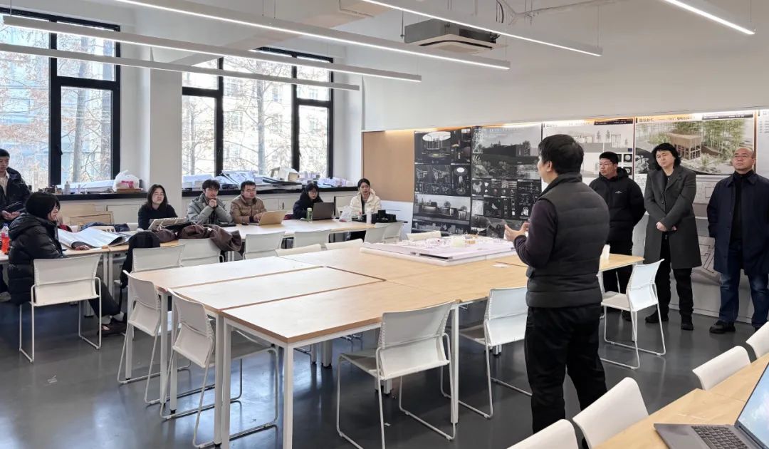 陆谦受客座教席教授孟凡浩先生分享教学心得,评图嘉宾代表上海交通大学张海翱副教授发表讲话。