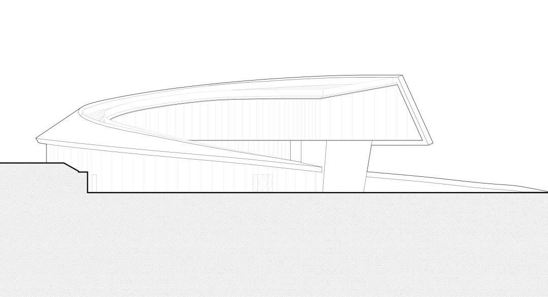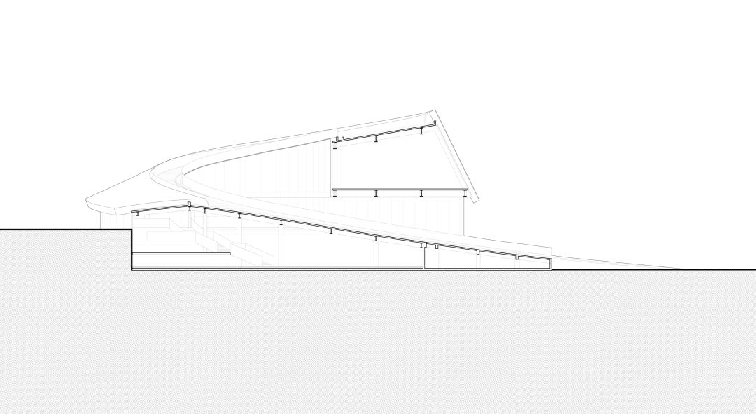 geometrical perspective, the facade and roof of the building evolve from the same