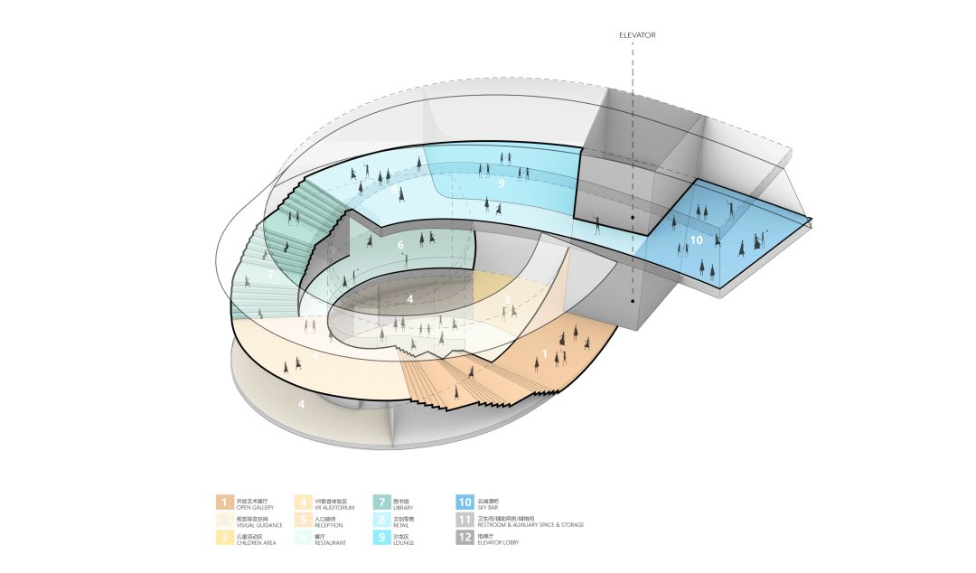 west wing. The visitor center is one of the important spatial nodes, and the