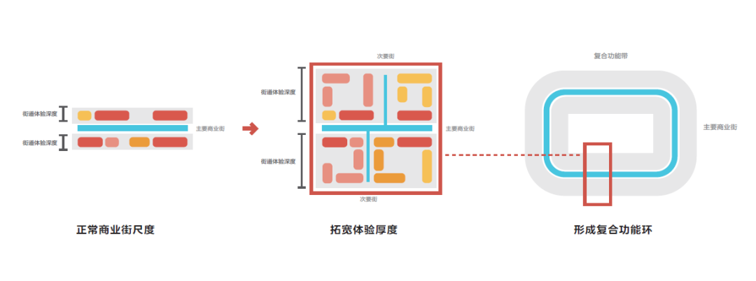 At the same time, the function loop is a circular function experience belt with radially-extending beyond the main street, rather than a basic linear pedestrian street. The initially scattered functions are naturally united to generate a new spatial connection under the structure of the "function loop." Different from the scale of conventional streets, we take the courtyard group as a new unit to widen the vertical experience thickness and continue the original site texture. With porous and open permeability, the "complex function loop" generated by the nesting of many courtyards enhances the tour experience.