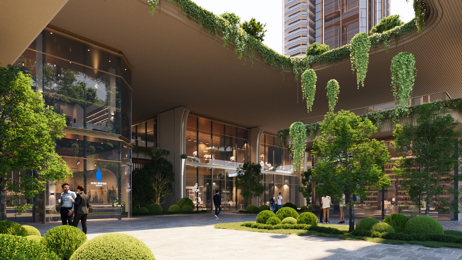 The Living Chassis is conceived as a layered ground plane—a three-dimensional canopy that invites shade, rest, and interaction. Rooted in the climatic realities of Shenzhen, it reclaims the base of the tower as a civic threshold, softening the scale of vertical density while restoring space for public life.